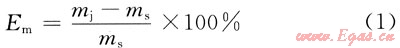 式中mj為檢定設(shè)備顯示的質(zhì)量流量示值;ms為氣體流量計(jì)量標(biāo)準(zhǔn)裝置給出的實(shí)際質(zhì)量示值。