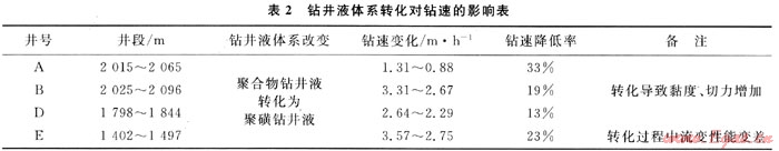 1.2 鉆井液體系轉(zhuǎn)化對(duì)鉆速的影響