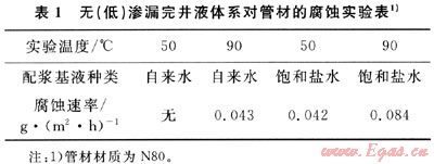 從實驗結(jié)果可知,淡水配制的無(低)滲漏完井液體系對N80管材基本沒有腐蝕,用飽和鹽水配制的無(低)滲漏完井液體系腐蝕很小,不影響管材的正常壽命。