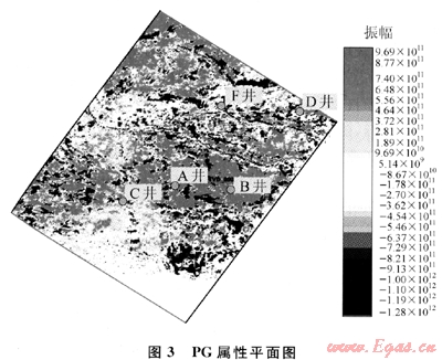 沿SB21.0儲層頂?shù)玫紸V0的PG屬性平面圖(圖3),紅色區(qū)域代表儲層頂?shù)暮瑲馓卣鳛?ldquo;第三類”的AV0異常。按以往對儲層含油氣性的認(rèn)識,PY地區(qū)有利的勘探目標(biāo)(“第三類”AV0異常)主要集中在紅色區(qū)域。AV0技術(shù)預(yù)測結(jié)果在B井處就不符合實鉆的結(jié)論。