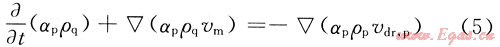 式中αp為顆粒體積分?jǐn)?shù);ρq為顆粒密度,kg/m3;vdr,p為漂移速度,m/s。