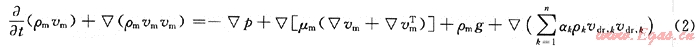 式中vm為混合速度,m/s;ρm為混合密度,kg/m3。