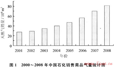 2000年以來,中國石油化工股份有限公司(以下簡稱中國石化)氣田勘探不斷獲得重大突破,階段探明儲量高速增長,氣層氣產(chǎn)量以年均10%以上的速度快速增長,2008年天然氣產(chǎn)量達到83×108m3。天然氣市場規(guī)模迅速擴大,2008年中國石化銷售商品氣70.5×108m3,2009年商品氣量突破71×108m3,約占全國天然氣總消費量的9%。