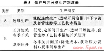 1) 針對不同類型氣井生產(chǎn)動(dòng)態(tài)特征,對氣井進(jìn)行細(xì)化分類,將低產(chǎn)井分為“連續(xù)生產(chǎn)”、“長開短關(guān)”、“長關(guān)短開”與“冬季長關(guān)、夏季間開”型,優(yōu)化了低產(chǎn)井的工作制度。