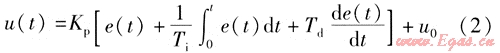 由于計算機控制是采取采樣方式控制的,它只能根據(jù)采樣時刻的誤差值計算控制變量(調(diào)整量)u,因此,必須對傳統(tǒng)算法進(jìn)行修正才能用計算機軟件來實現(xiàn)適用于計算機的控制算法[4~7]。時間t可采用下式給出: