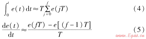 在計算機的采樣時刻t,以求和代替積分、以增量代替微分進(jìn)行離散化的近似變換: