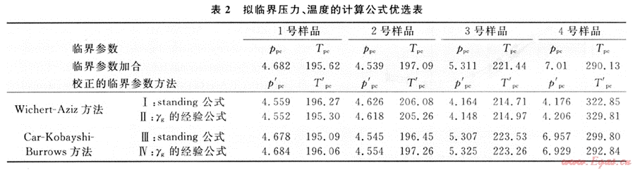 目前比較通用的方法有兩個:一是1972年Wicher-Aziz提出的考慮了H2S、CO2的影響;二是1954年Car-Kobayshi-Burrows方法,此法考慮了對H2S、C02、N2的校正。