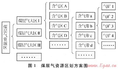 中國煤層氣資源豐富,目前正處于煤層氣開發(fā)大發(fā)展前期,迫切需要對中國整體煤層氣特別是基于基本單元層次的資源狀況進(jìn)行整體分析和評價。經(jīng)過近20a的地質(zhì)研究和勘探實(shí)踐,煤層氣地質(zhì)單元的劃分有多種意見[1]。參考相關(guān)研究成果,并考慮實(shí)際資料與實(shí)際勘探開發(fā)活動程度,按煤層氣大區(qū)、含氣區(qū)、含氣帶、氣田這4個級別進(jìn)行中國煤層氣資源分布區(qū)劃(見圖1)。
