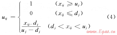 式中:uj為最大界限值,dj為最小界限值(下同)。
