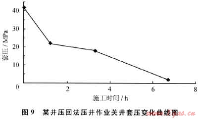 2) 用泥漿泵環(huán)空擠注密度1.20g/cm3的鉆井液28m3,套壓由22MPa降至18MPa。