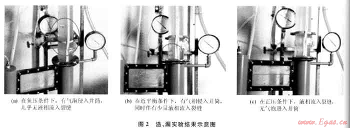 用清水加CMC為液相,氮?dú)鉃闅庀啵瑢?shí)驗(yàn)觀察在鉆遇裂縫性儲(chǔ)層時(shí),氣、液兩相的溢、漏現(xiàn)象。實(shí)驗(yàn)結(jié)果如圖2所示。