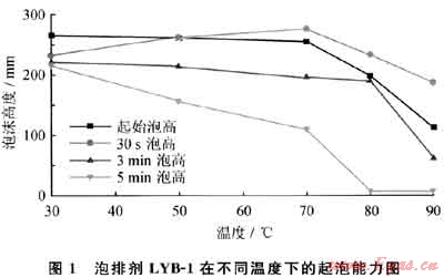 2.2 泡排劑LYB-1的各項(xiàng)性能評(píng)價(jià)