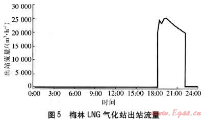 ④ 需求的最大小時(shí)流量超過(guò)目前上游合同中規(guī)定的最大小時(shí)提氣速率,可采用增購(gòu)短期合同氣來(lái)增加小時(shí)提氣速率;同時(shí)利用梅林LNG氣化站和大工業(yè)區(qū)LNG氣化站的調(diào)峰功能,降低高峰時(shí)段門站的提氣速率。