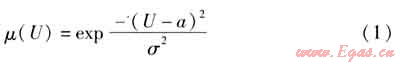埋地鋼質(zhì)管道風光電網(wǎng)絡式防腐系統(tǒng)的控制算法為神經(jīng)模糊自適應智能控制。定義管地電位的檢測值為5個區(qū)間,根據(jù)其對管道腐蝕的影響程度,其值劃分為優(yōu)、良、中、差、劣5個區(qū)間,用高斯隸屬度函數(shù)來表征管地電位對管道的腐蝕影響,其表達式見式(1)。