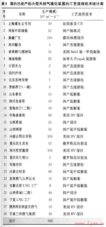 國(guó)內(nèi)已建和擬建的小型LNG液化工廠,有些工廠的配套設(shè)備國(guó)產(chǎn)化率已達(dá)到60%。處理規(guī)模為30×104m3/d及以下生產(chǎn)線的液化廠,從工藝包到有關(guān)設(shè)備選擇的集成技術(shù)可以完全實(shí)現(xiàn)國(guó)產(chǎn)化。根據(jù)具體情況,還可以采用國(guó)產(chǎn)設(shè)備和進(jìn)口設(shè)備相結(jié)合的方式。
