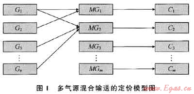 中國天然氣市場已進入高速發(fā)展階段,自2000年以來,國內(nèi)天然氣產(chǎn)量年均增長高達13.7%[1]。據(jù)中國石油和化學工業(yè)協(xié)會統(tǒng)計,中國天然氣消費量2009年消費量為874.5×108m3,同比增長11.5%,2009年產(chǎn)量為830×108m3,增長7.7%,2010年1-7月國內(nèi)天然氣產(chǎn)量同比增長9.8%,達532×108m3(國家統(tǒng)計局數(shù)據(jù))。國內(nèi)能源結構中,目前天然氣比例不到4%,遠低于世界24.1%的平均水平,按國家能源局的規(guī)劃,未來的20a里,天然氣在能源結構中的比重將提高到8.0%以上[2],天然氣需求將達到4000×108m3,多種途徑不同氣源的天然氣將大規(guī)模進入中國。市場建設方面,以西氣東輸和川氣東送等主干網(wǎng)為基礎,各支線為輔,國內(nèi)天然氣逐步形成了東北、環(huán)渤海、華東、中南、華南、西南、西部等區(qū)域市場[3]。因此,多氣源供應將成為天然氣市場的常態(tài),多氣源混合輸送的定價問題將成為天然氣市場的焦點問題。