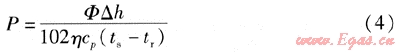 對于有壓熱水鍋爐供熱系統(tǒng),若供水溫度115℃,回水溫度70℃,其循環(huán)泵質量流量qm的計算式為: