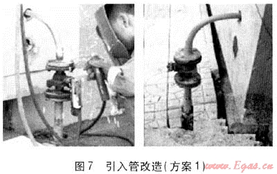 ③ 在金屬波紋軟管上涂抹防腐漆,見圖7右。