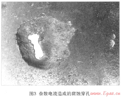 實際上,城市燃?xì)夤艿乐苓呁嬖趶娏业碾s散電流[3],對在役管道的開挖檢測發(fā)現(xiàn),許多腐蝕坑呈馬蹄型并見金屬光澤,剖面雖有起伏,但手感光滑,邊緣也較清晰,腐蝕產(chǎn)物為黑色粉末狀,無分層現(xiàn)象,就是典型的雜散電流腐蝕(圖3)。