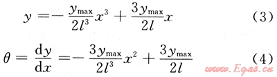 根據(jù)工程經(jīng)驗(yàn)可知,管道在沉降作用下的變形是隨沉陷量的增大而增加的。設(shè)管道的變形符合三次曲線規(guī)律,由相應(yīng)的邊界條件: