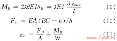 ;EI為彎曲剛度;K為彈性地基的彈簧常數(shù);MB為B點(diǎn)彎矩。