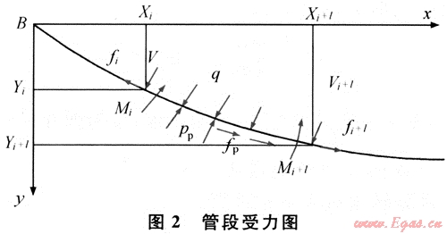 若將管道分成n段,取第i段管道為研究對(duì)象,其受力情況如圖2所示,由受力平衡狀態(tài)分析可得: