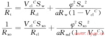 式中:Rt為深探測電阻率,Ω·m;Rxo為淺探測電阻率,Ω·m;Sw為地層含水飽和度,%;Sxo為鉆井液侵入帶含水飽和度,%;Rc1為泥質電阻率,Ω·m;Vc1為泥質體積含量,%;Rmf為鉆井液濾液電阻率,Ω·m;Rw為地層水電阻率,Ω·m;C為系數(shù),C=1~2。