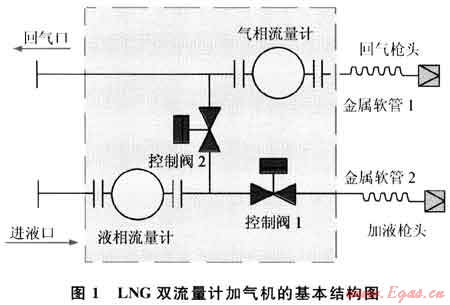 LNG加氣機(jī)通過(guò)加液通路將LNG加注到汽車(chē)儲(chǔ)氣罐中,同時(shí)完成對(duì)加注量的計(jì)量。流量計(jì)是LNG加氣機(jī)的核心計(jì)量部件,LNG的超低溫特性決定了其對(duì)流量計(jì)的選擇較為苛刻。目前LNG加氣機(jī)采用基于科里奧利力原理的質(zhì)量流量計(jì),由液相流量計(jì)負(fù)責(zé)計(jì)量加氣站加注到汽車(chē)儲(chǔ)氣罐中的LNG質(zhì)量。