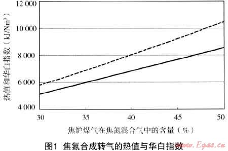在實際應用中,當利用氮氣替代高爐煤氣與焦爐煤氣合成轉爐煤氣時,由于其能夠互換的范圍較小,難于實現(xiàn)各參數(shù)的精確控制,為保證安全及穩(wěn)定運行,可適當提高焦爐煤氣在混合氣中的比例,以保證不致形成脫火現(xiàn)象。