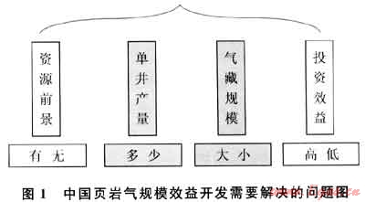 中國地質(zhì)條件比北美復雜,頁巖氣勘探開發(fā)僅處于起步階段,還有許多技術和政策問題需要探索。從北美的經(jīng)驗看,頁巖氣的勘探開發(fā)具有“高技術、高投入、低成本、長周期”的特點。頁巖氣能否成為中國天然氣勘探開發(fā)的后備領域,能否形成產(chǎn)業(yè)化規(guī)模并為調(diào)整和優(yōu)化能源結(jié)構(gòu)、緩減天然氣供需矛盾作出貢獻,至少需要解決以下4個問題:①中國是否存在頁巖氣,即“有無”問題;②頁巖氣的單井產(chǎn)量有多高,即“多少”問題;③頁巖氣藏的規(guī)模有多大,即“大小”問題;④開采頁巖氣的成本是否劃算,即“高低”問題(圖1)。