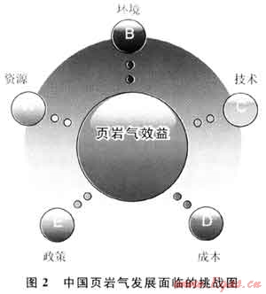 四川盆地長寧、威遠地區(qū)已鉆井壓裂后均獲氣,表明四川盆地長寧和威遠地區(qū)存在豐富的頁巖氣,初步回答了四川盆地有無頁巖氣的問題。但是資源前景、單井產(chǎn)量、氣藏規(guī)模、投資效益等問題仍需艱苦探索。而要解決這些問題,則面臨著資源、環(huán)境、技術、成本和政策等5個方面的挑戰(zhàn)(圖2)。