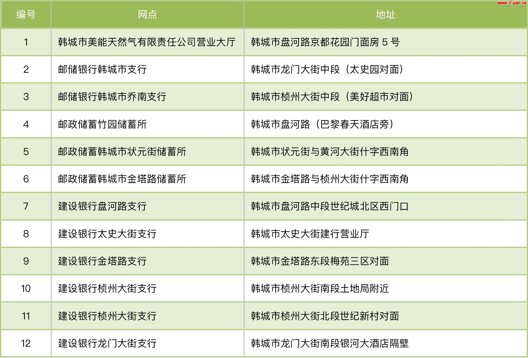 韓城市美能天然氣公司售氣網(wǎng)點(diǎn) 0913-5302277/5198977