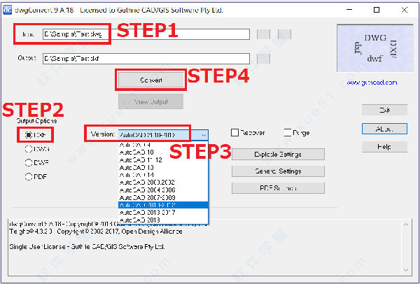 2、將DWG轉換為DWG,將DWG轉換為DXF,將DXF轉換為DWG。還將AutoCAD轉換為PDF