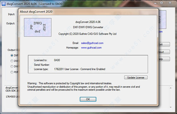 4、至此,dwgConvert(AutoCAD版本轉換器) 2020 A.06破解版成功注冊破解,運行打開軟件,用戶可以無限制免費使用啦