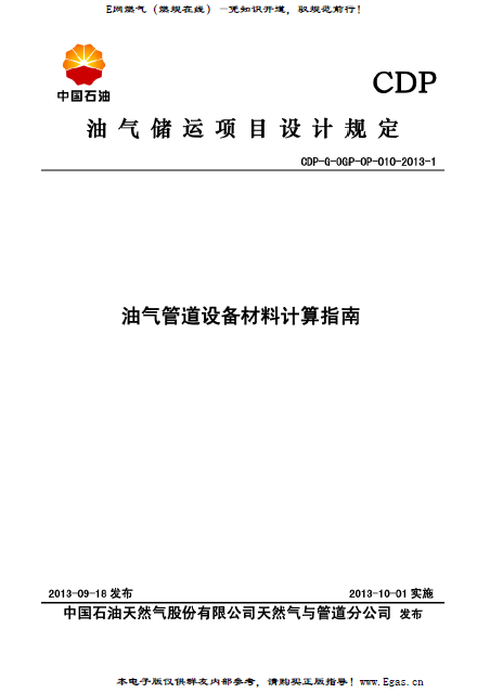 本文件適用于陸上新建油氣管道工程設備、材料的計算,改擴建油氣管道工程設備、材料的計算可參照執(zhí)行。