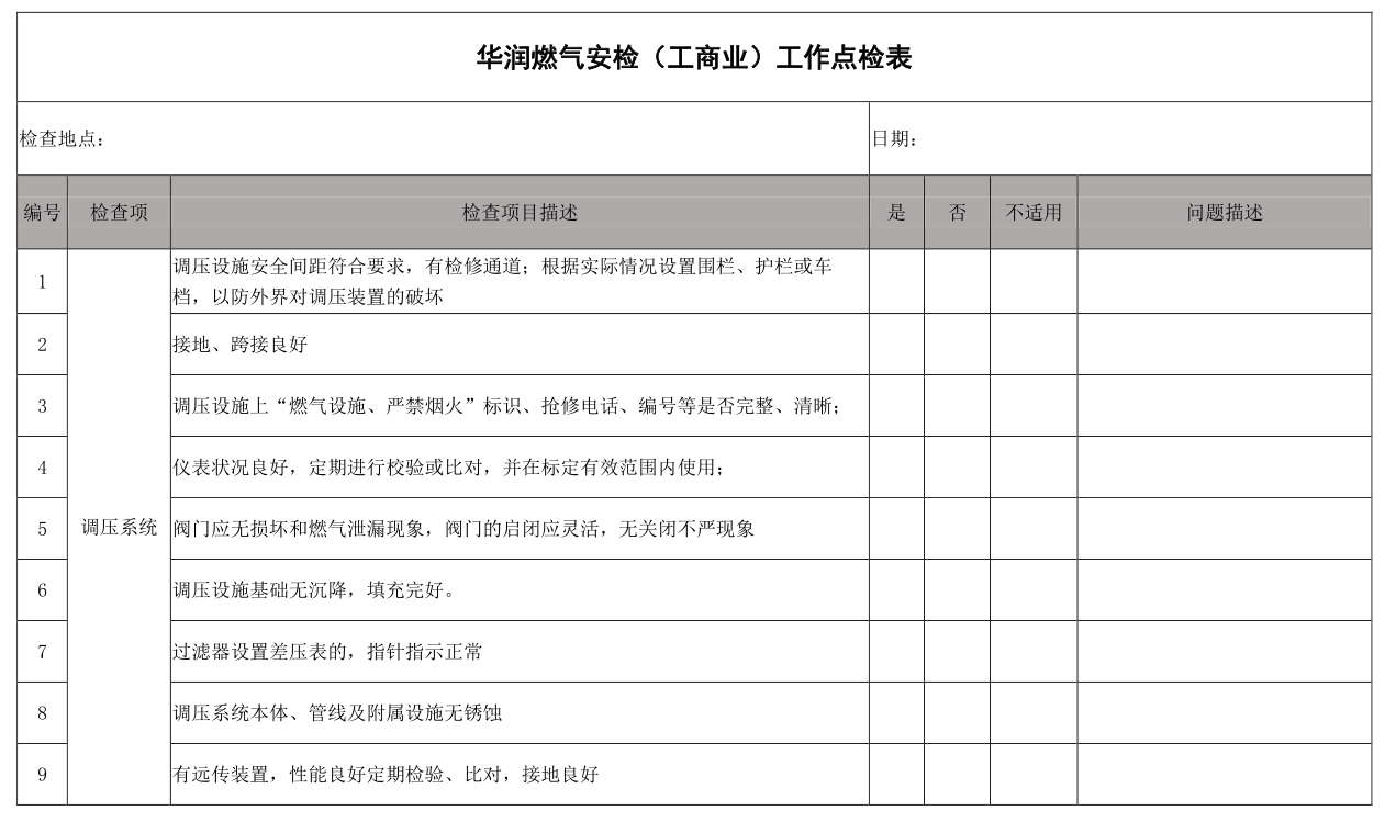 3 調(diào)壓設施上“燃氣設施、 嚴禁煙火” 標識、 搶修電話、 編號等是否完整、 清晰;