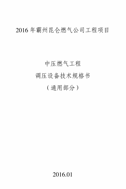 昆侖燃氣中壓燃氣工程調壓設備技術規(guī)格書