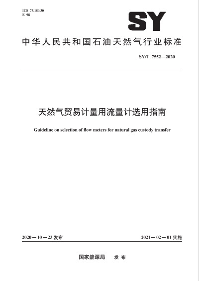 本標(biāo)準(zhǔn)規(guī)定了用于天然氣貿(mào)易計量系統(tǒng)中流量計(以下簡稱流量計)的選用方法,并給出了計量.系統(tǒng)中流量計選用示例和不確定度評估方法。