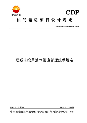 本規(guī)定明確了工程完工后六個月內不能投產的油氣管道管理技術要求。