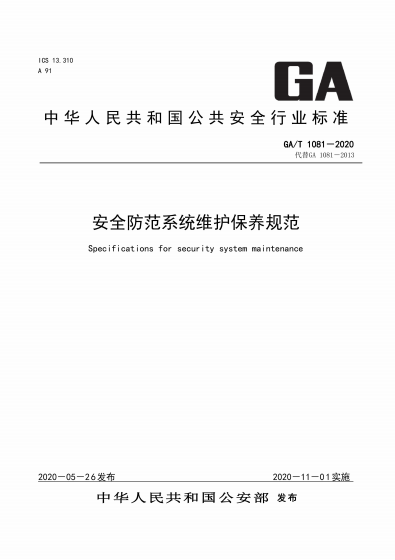 本標(biāo)準(zhǔn)代替GA 1081一2013《安全防范系統(tǒng)維護(hù)保養(yǎng)規(guī)范》,與GA 1081一2013相比,除編輯性修改外,主要技術(shù)變化如下: