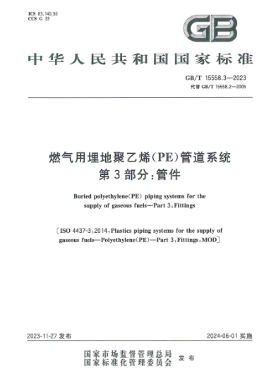 燃?xì)庥寐竦?a href=http://www.zizhongrencai.com/e/tags/?tagname=%E8%81%9A%E4%B9%99%E7%83%AF target=_blank class=infotextkey>聚乙烯(PE)管道系統(tǒng) 第3部分:管件GB/T 15558.3-2023