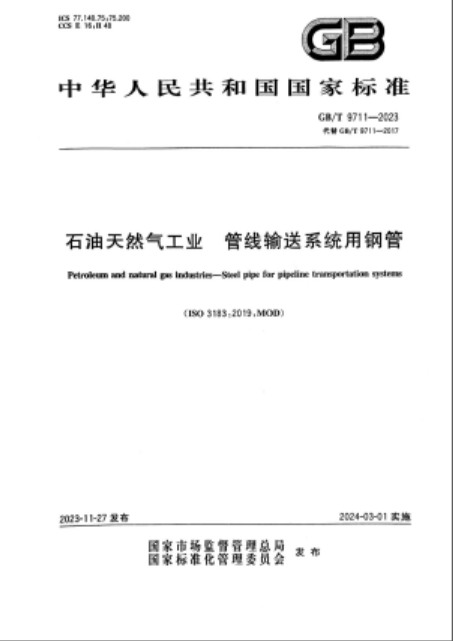本文件代替GB/T9711—2017《石油天然氣工業(yè)管線輸送系統(tǒng)用鋼管》。與GB/T 9711—2017相比,除結(jié)構(gòu)調(diào)整和編輯性改動外,主要技術(shù)變化如下,